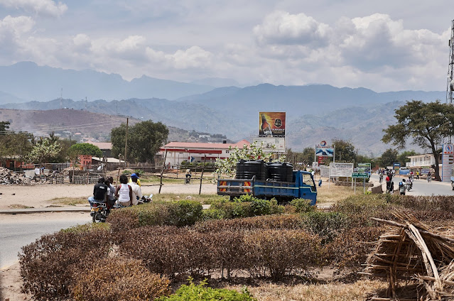 Kasese leží pod Rwenzori. Na hřebenech byl chvilkami vidět sníh, ale pak hory zahalily mraky. Bylo dusné vedro.