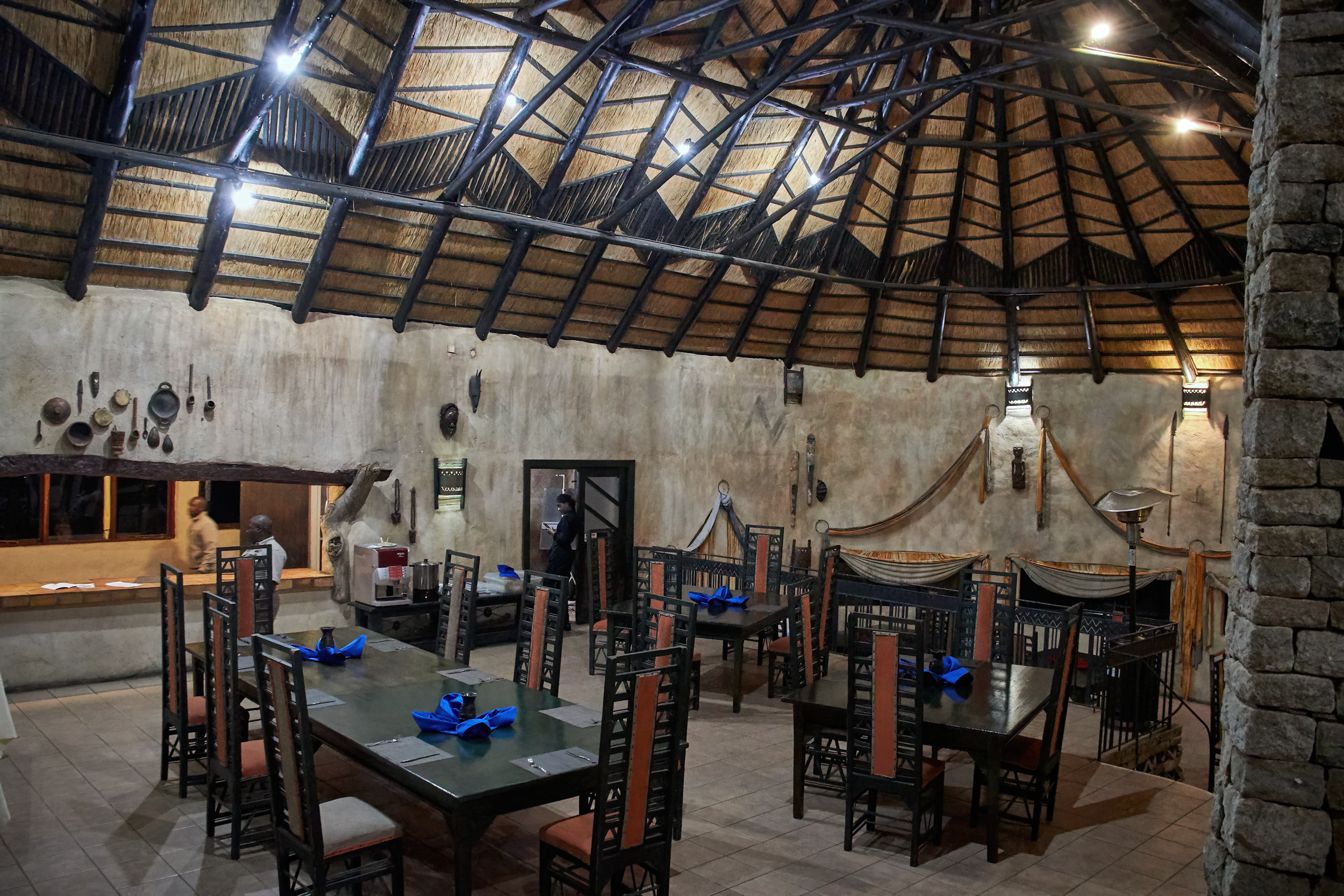 Ubytování v Lodge at the Ancient City je hodně nóbl, chalety jsou ve stylu Great Zimbabwe.