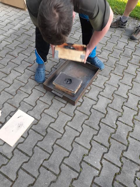 Thle je report z druhého kola odlévání cejch, léta Páně 6.dubna 2024.misr slévač Beran se dobře připravil. Nachystal dělovinu, do které mimo jiné roztavil sběračku Michala Pešťáka ze Státního oblastního archivu Plzeň.